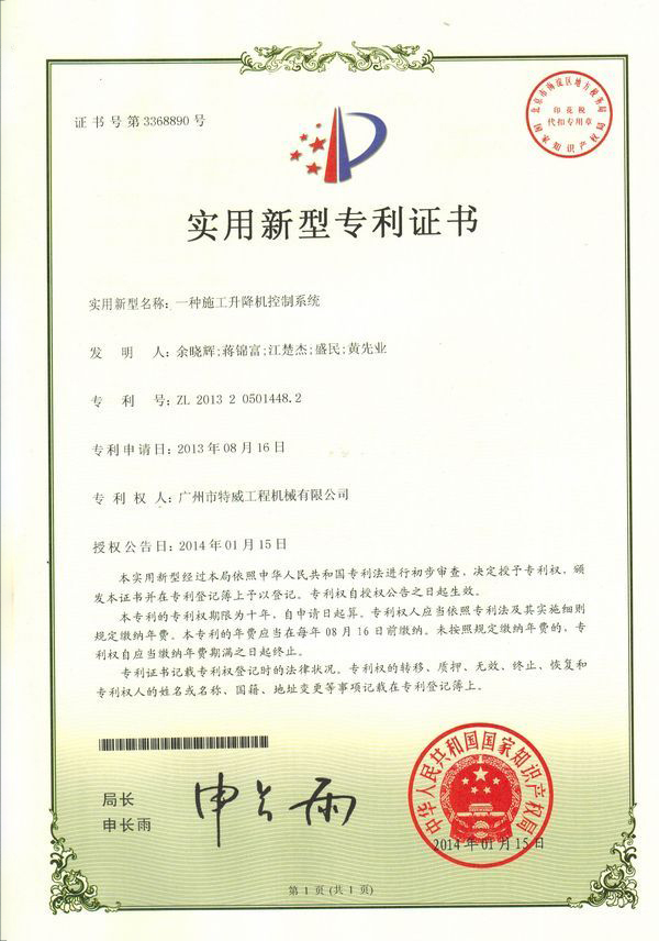 廣州市特威工程機(jī)械有限公司地處廣州市白云區(qū)神山鎮(zhèn),廣清高速神山出口附近,是一家施工升降機(jī)的專業(yè)生產(chǎn)廠家。公司成立于2011年,占地100000多平方米,注冊(cè)資金1060萬(wàn)元,現(xiàn)有員工300余人其中工程技術(shù)人員33人,高級(jí)技術(shù)人員52人。